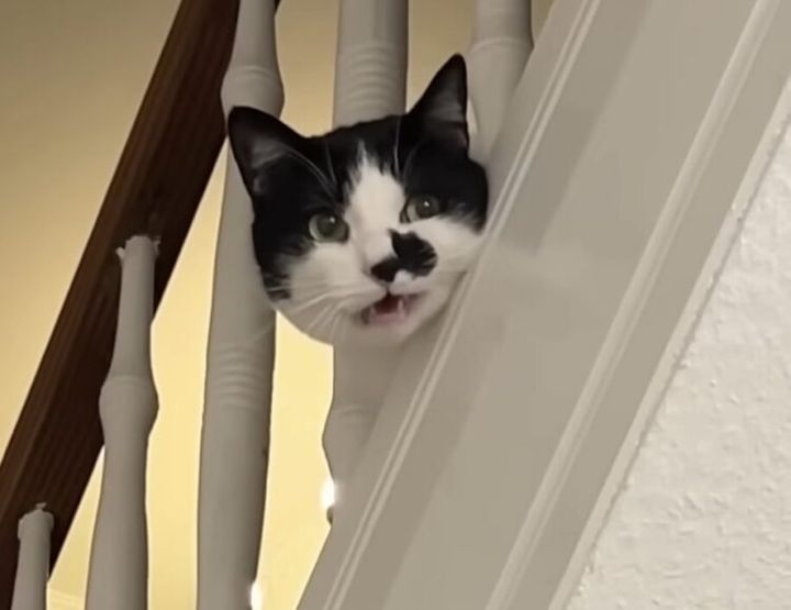 にゃ〜〜! 目が合ったら叫んでダッシュ! 猫さんの階段あそびが謎すぎる