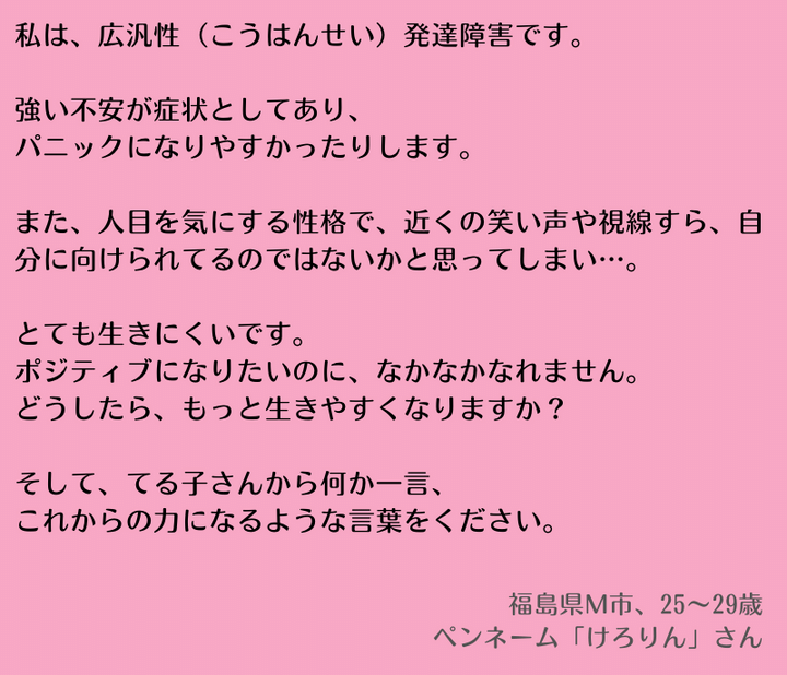 そのひとつのラベルとともに過ごしている方から、今回はお手紙をいただきました。ご紹介したいと思います。