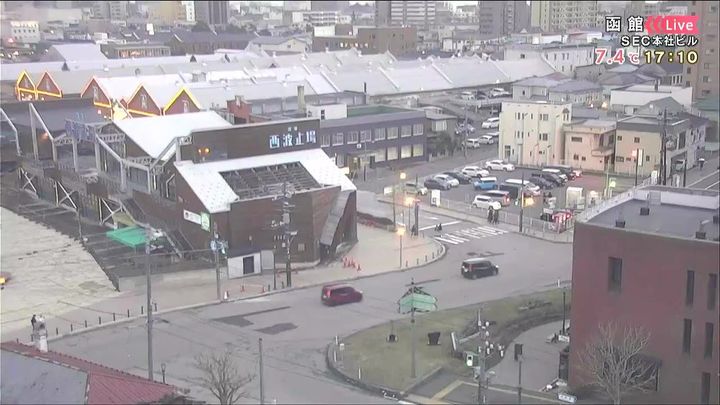 背景は28日午後5時ごろの函館ベイ情報カメラ