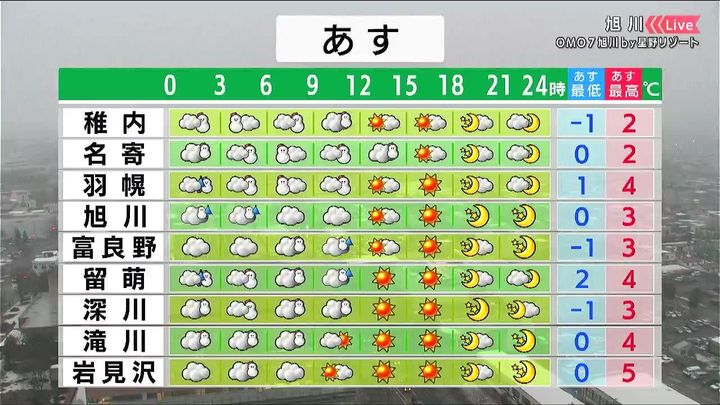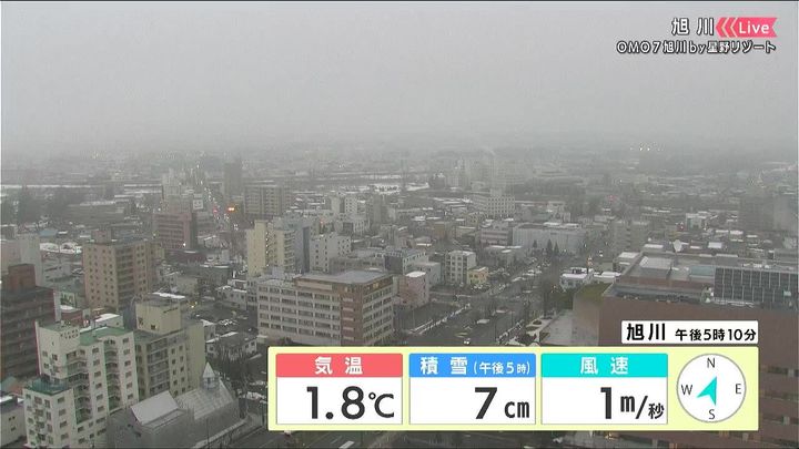 背景は29日午後5時ごろの旭川情報カメラ