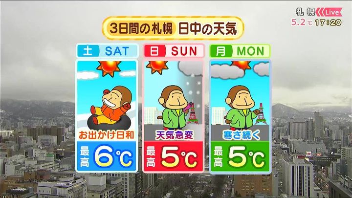 3日間の札幌です! 土日月の天気をもんすけでお伝えします!