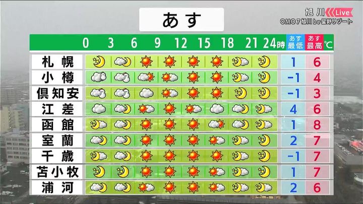 ・あすの札幌の朝昼晩の天気
