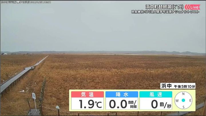 背景は29日午後5時ごろの浜中町琵琶瀬防災カメラ