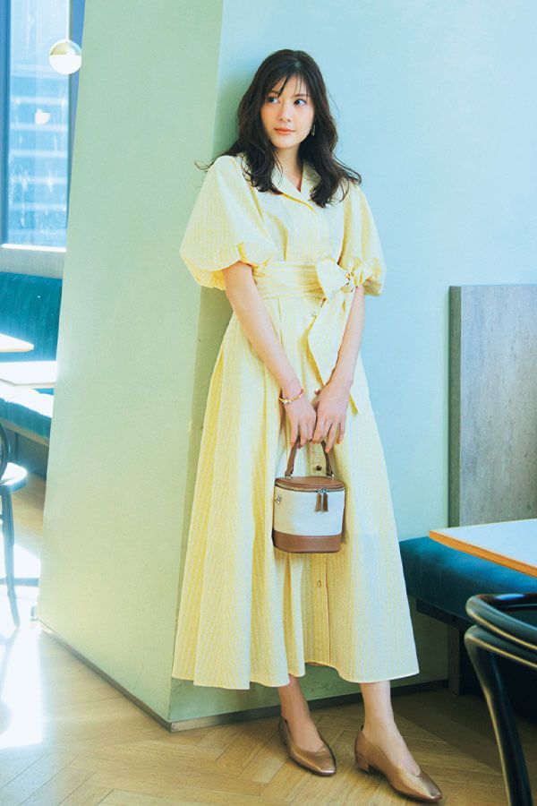 テクなしでおしゃれが完成!柔らかなクリームイエローが女性らしいお出かけにぴったりな春ワンピ
