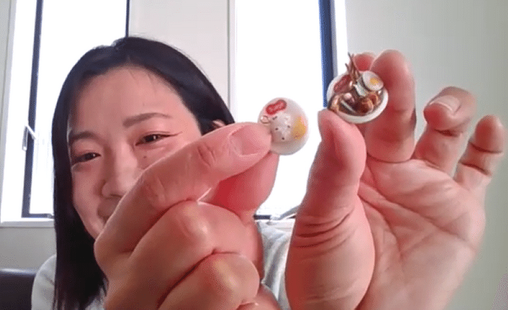 ミニチュア作家・碧aoさん。完成したミニチュアストラップを見せてくれているようす