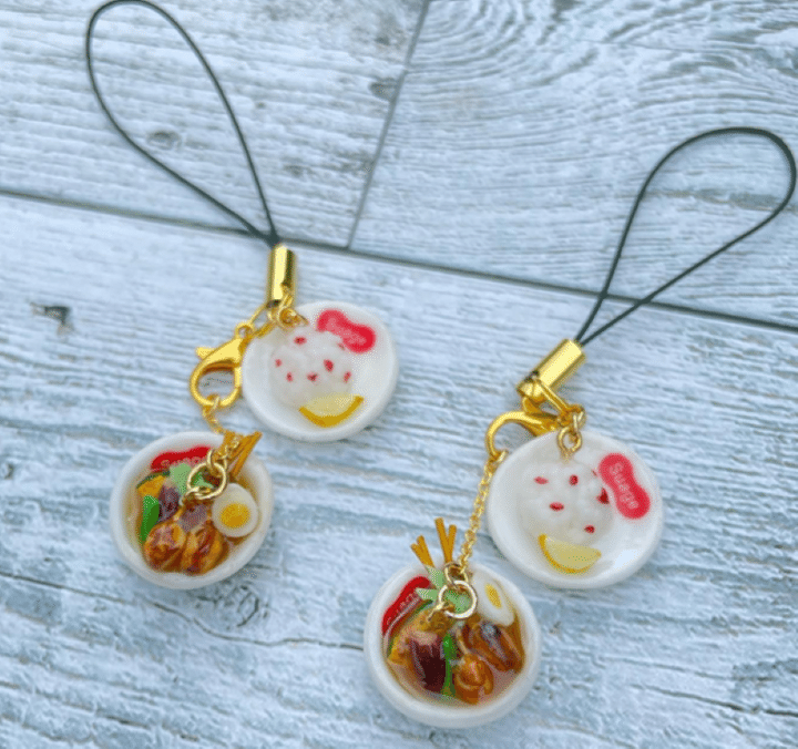 Suage店舗で販売しているストラップ「パリパリ知床鶏のスープカレー(碧aoさん制作のミニチュア)