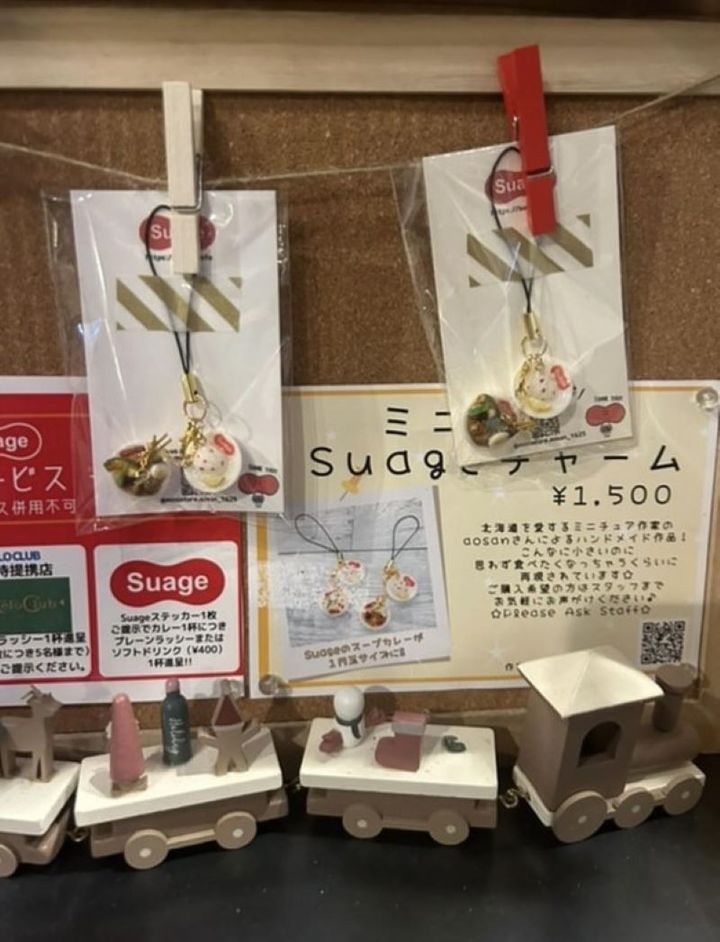 北海道の食文化・スープカレーの魅力を、手のひらサイズで楽しめるミニチュアストラップ。ぜひ、札幌のSuage店舗でその魅力を確かめてみてください!