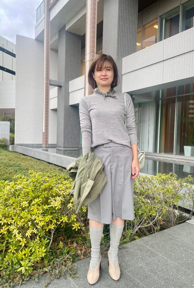 ぼんやりとした印象になりがちなグレーのアイテムを品良くおしゃれにまとめられていて、とても勉強になりました。たくさんの方に似合うモノを提案されている河村さんだからこそ、ご自身に合ったモノを熟知し、楽しまれていて素敵でした!