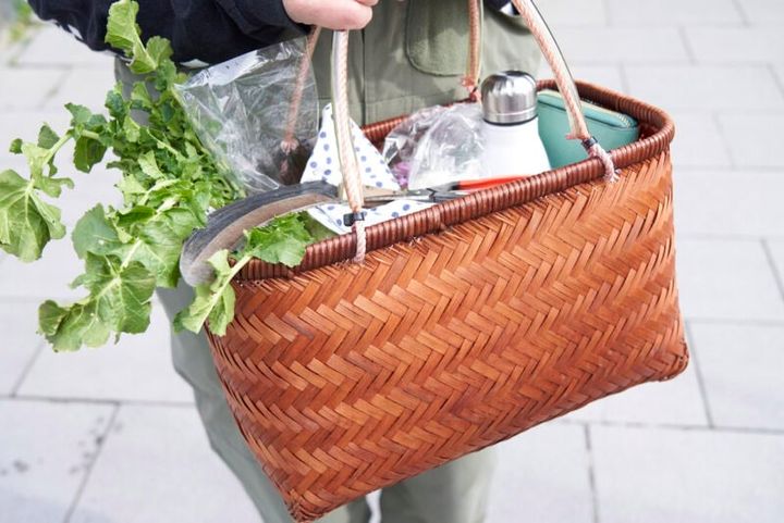 竹製のマルシェかごには 採れたて野菜などたっぷり収納して