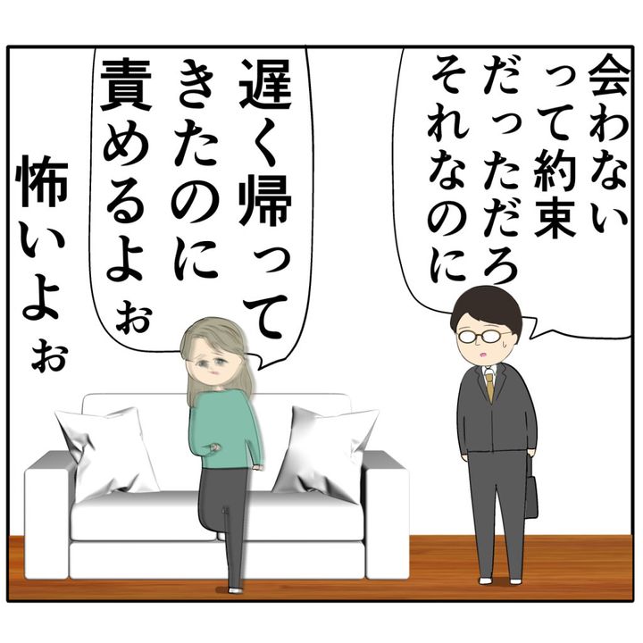 約束を破ったジュリ実さんに「会わないって約束だっただろ。それなのに」とめが根さんが言うと、ジュリ実さんは「遅く帰ってきたのに責めるよぉ。怖いよぉ」と言って別の部屋へ行ってしまいました。