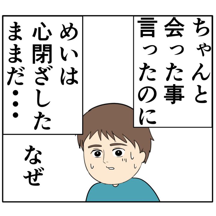 めいさんの態度に「ちゃんと会った事言ったのに、めいは心閉ざしたままだ・・。なぜ」と思い悩むろみ緒さん。