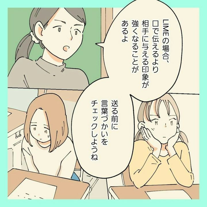 勝手に動画を送ったみさとに対し、ゆいは怒りが爆発!感情的な文章を送ります。一方、みさとは反省していないようで、2人の仲は険悪ムードに…。子どもから話を聞いた保護者が学校へ連絡をし、SNSの利用ルールについて話し合う場が設けられました。