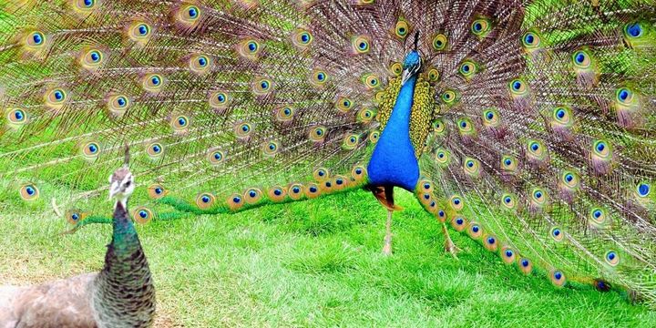 クジャクの生存には不利であるかもしれない長い尾は、メスに交尾の相手として選ばれる。