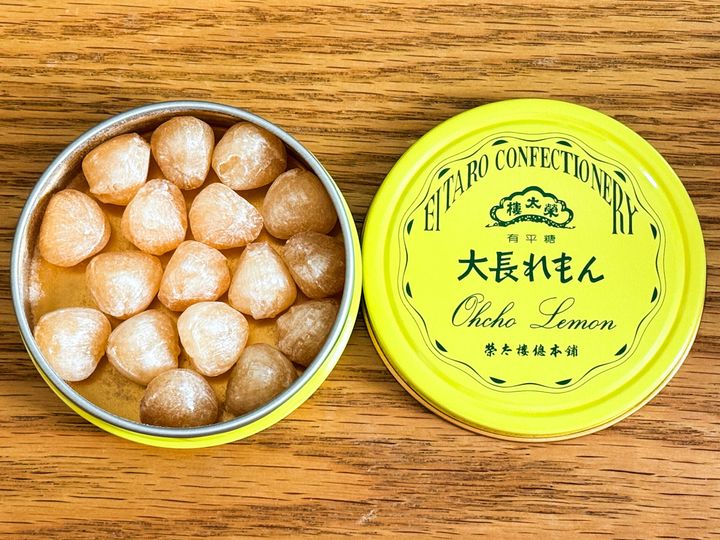 「大長れもん」は、瀬戸内海大長レモンを原料に使用した果汁飴。さわやかな風味のほろ苦さが特徴で、レモンならではの酸味がたまらない飴です。暑い日にぴったりかも。