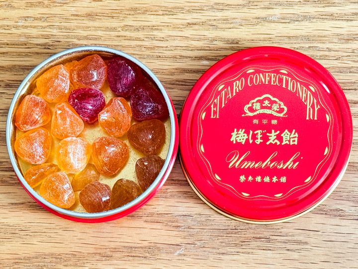 この三角の形が梅干しに似ているということから、「梅ぼ志飴」と名付けられたそうです。「梅ぼ志」という名前ですが、梅の味は一切しないのが面白いところ。