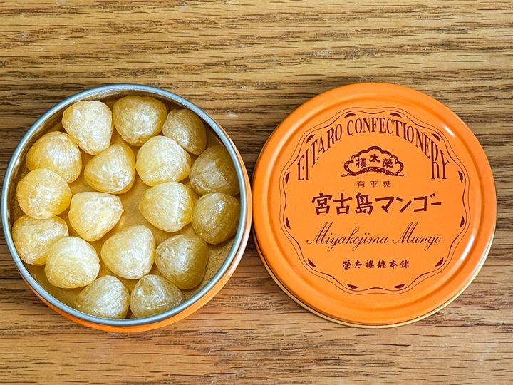 「宮古島マンゴー」は、宮古島産のマンゴーを原料に使用した果汁飴。ほんのりとした甘みで、マンゴーのジューシーな果汁の風味が口の中に広がります。まさに南国の味!