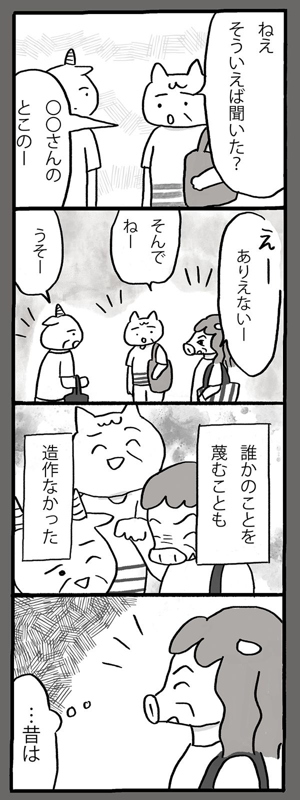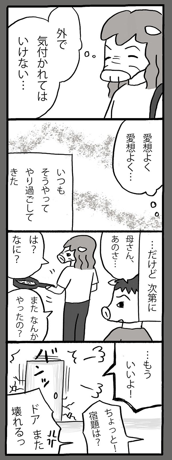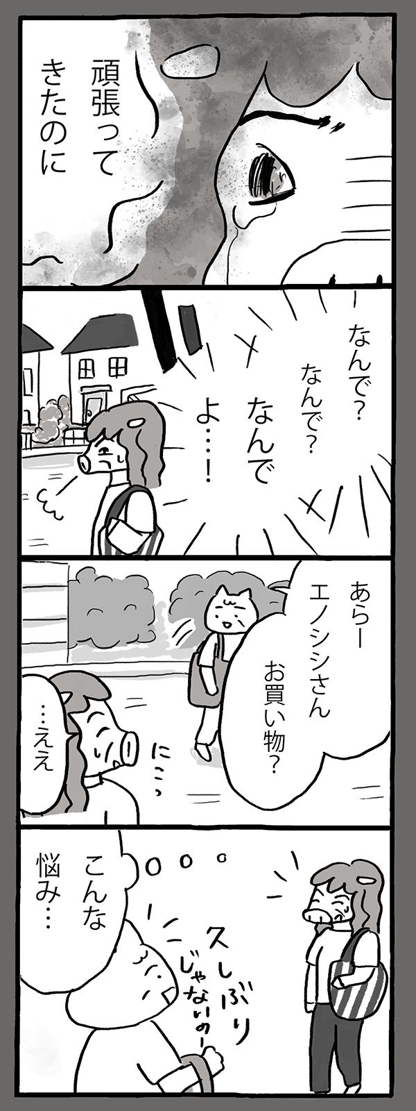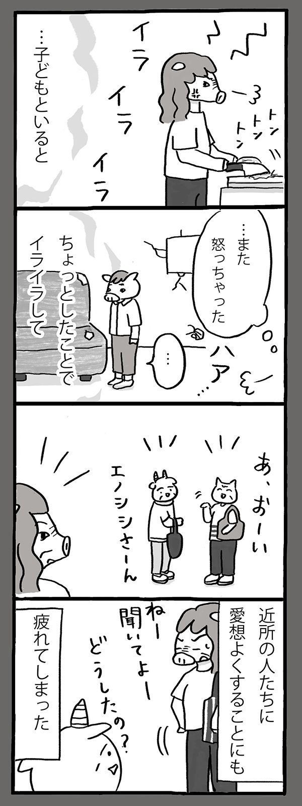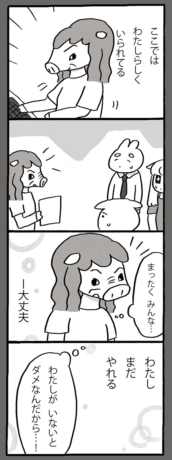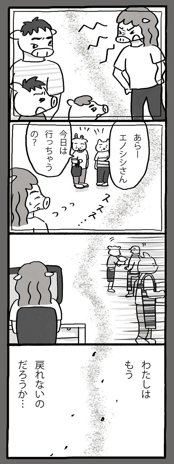第5回 マママンガ賞出身のしのざきあゆみさんによる連載。仕事と家族の間で迷いながら、自分のやりたいことを探っていく、イヌミヤさんの物語。今回はパートの先輩、エノシシさんのお話です。
