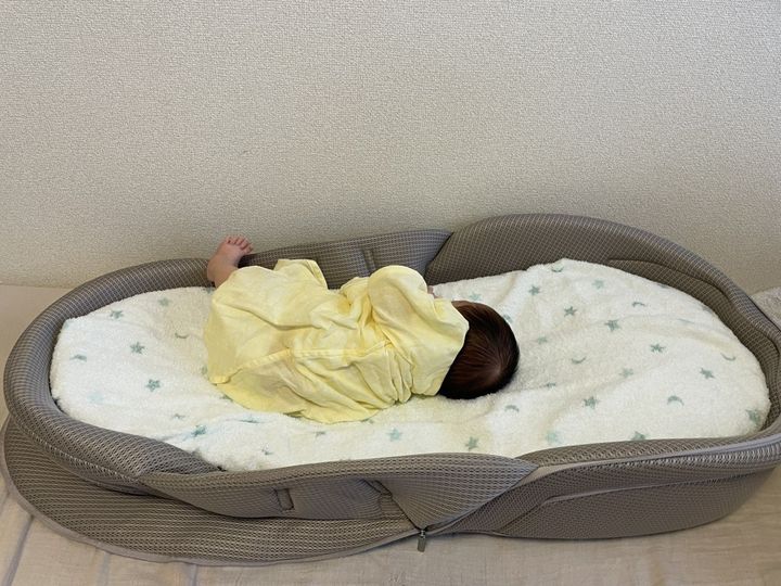 投稿者・すい🦕(-2m)さんはこのたび出産を迎え、入院生活を終えて無事退院。わが子との生活をスタートさせました。ベビーベッドにいるわが子をみて、じわじわと幸せをかみ締めているようです。