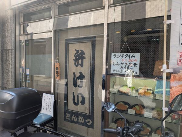 西新宿から徒歩3分、ランチ時はいつも並んでいて何度も諦めていたとんかつ屋さん「弁けい」。念願かなって来店することができました。