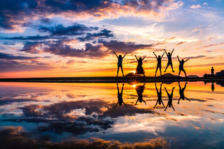 "日本のウユニ塩湖"として、今やすっかりおなじみとなった香川県三豊市(みとよし)にある「父母ヶ浜(ちちぶがはま)」。約1kmにおよぶロングビーチでは、干潮時の潮だまりに映り込んだ夕日の絶景が南米ウユニ塩湖を彷彿とさせるとして一躍人気の観光名所となっています。