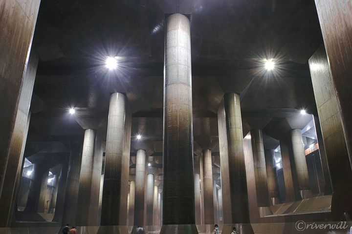 サッカーグラウンドほどの広さをもつ調圧水槽は高さ18m、幅2m、奥行き7m、重さ500トンもの巨大な柱59本によって支えられ、文字通り“縁の下の力持ち”。近年では施設見学ツアーや映画・ドラマ等のロケ地として人気が高まっています。