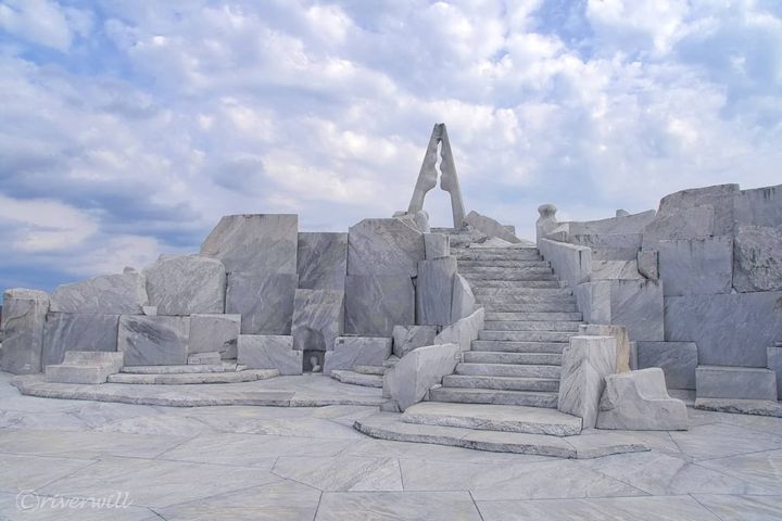 明治から昭和初期にかけて活躍した実業家・耕三寺耕三氏が、母の菩提を弔うため建立した浄土真宗の寺院・耕三寺(こうぞうじ)。その境内に位置し、世界を股にかける現代彫刻家・杭谷一東(くえたにいっとう)氏が手掛けた総大理石の屋外アートです。