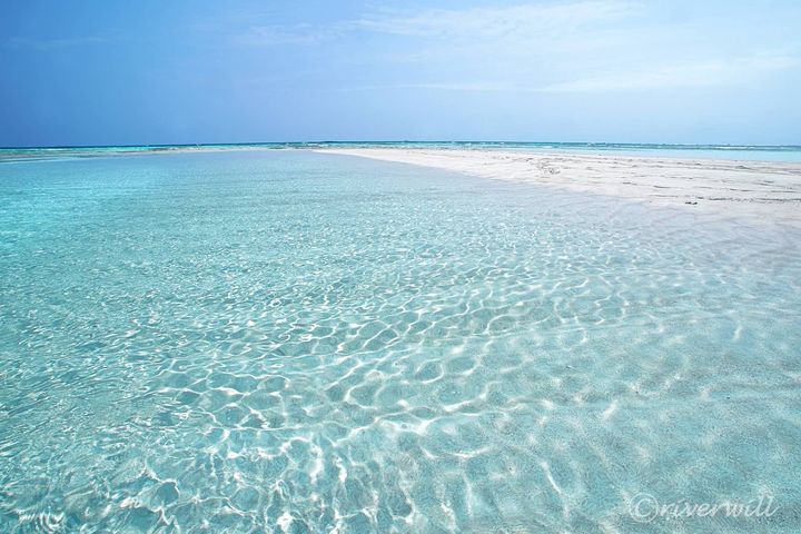 百合ヶ浜とは、潮の満ち引きによって出現する「幻の浜」。そのピークとなる大潮の日は、果てしなく続く遠浅のビーチに白砂の砂紋が海底に広がり、ターコイズブルーの海がゆらめいて、まさにこここそ「天国に一番近い島」ではないかと錯覚するほど。