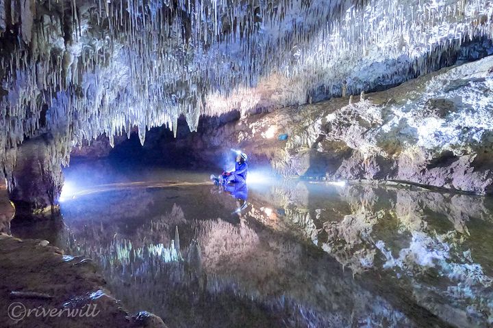 全国に何千もの洞窟群が存在するなか、ヘルメットなしで気軽に見学できる “観光洞窟”に対し、ヘルメットやヘッドライト、専用スーツなどを装着し、暗闇のなか、道なき道をほふく前進したり潜水したりして進むスリリングな洞窟探検を“ケイビング”と呼んでいます。