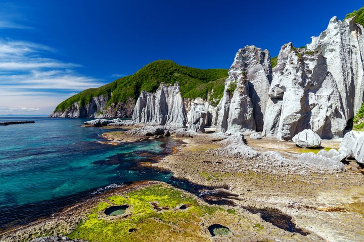 白亜の断崖がそそり立つ海岸線。英国ロンドン郊外の景勝地「セブン・シスターズ」を彷彿とさせるこの光景は、かつてアイヌ語で「白い傾斜地」を意味する「シラフラ」で親しまれた、北海道乙部町(おとべちょう)にある滝瀬(たきせ)海岸です。