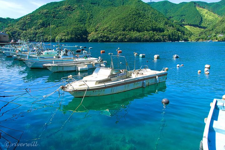 風光明媚な青い海の漁港でたゆたう漁船はさながら宙を浮いているよう。イタリアのランペトゥーザ島を彷彿とさせるそのスポットは、三重県尾鷲市(おわせし)にある九鬼漁港です。