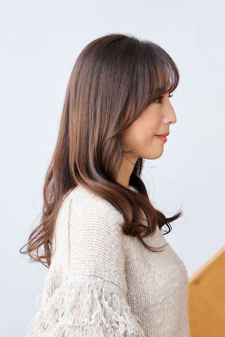 【HAIR DATA】トップのボリュームが減少とのお悩みだったので、前髪と根本に部分パーマをかけることで、乾かすだけで自然なボリュームが出るように仕上げました。顔まわりや裾にレイヤーをいれ、根元のフワッとした立ち上がり、動きやすいふんわり仕上がる柔らかな質感が魅力のフェミニンロングスタイルに。ケミカルダメージと熱ダメージのトリートメントを使用することで、パサつきと広がりを軽減し自然なツヤ感を演出。