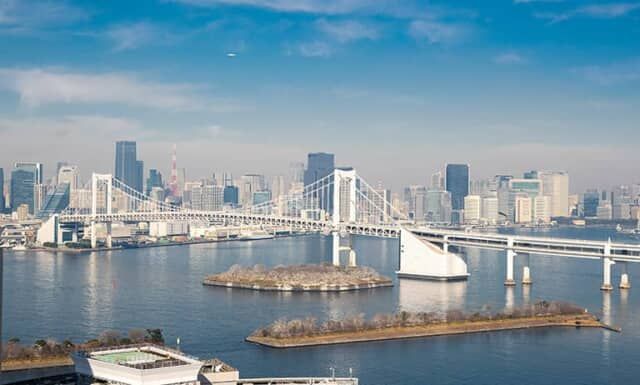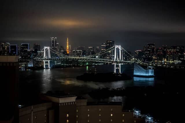 ▲レインボーブリッジと東京の街