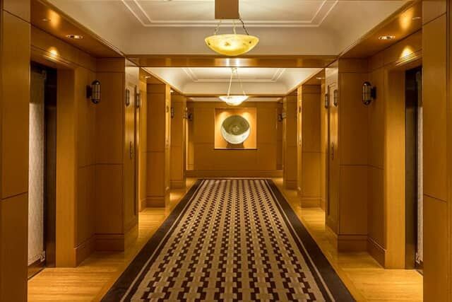▲2階のエレベーターホールもクラシカルな雰囲気