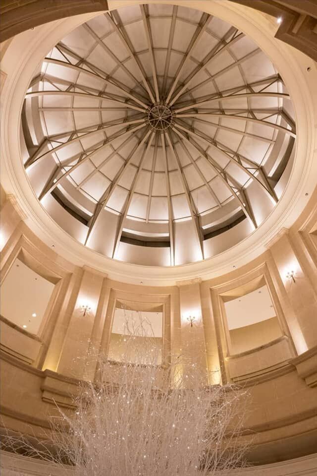 エントランスホールの頭上は美しいドームになっていて、近ごろのホテルでは見られなくなった格調高い作りを披露します。