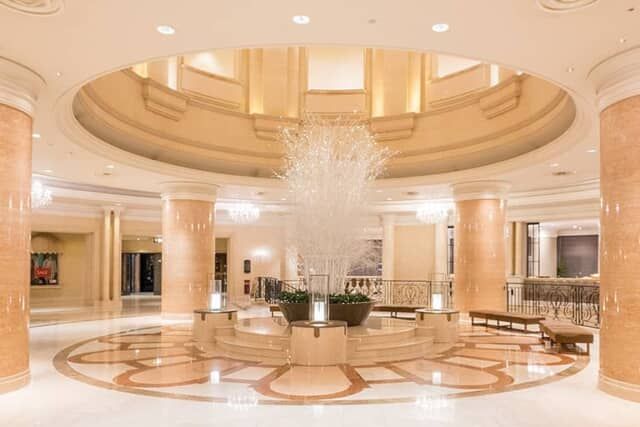 大理石をふんだんに使った重厚で格調高い空間にはベンチが置かれ、優雅な雰囲気を味わえます。
