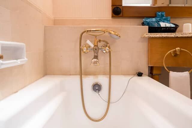 バスタブの水栓とシャワーもビンテージデザインとゴールドを採用。他では体験できない特別なバスタイムを楽しめます。