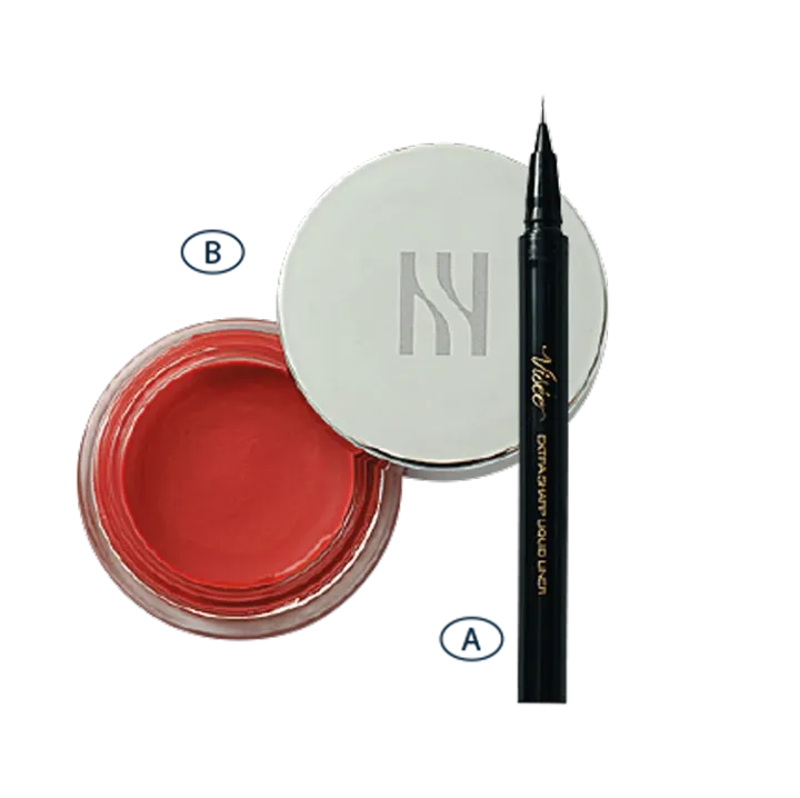 下まぶたのきわにで黒目幅分だけラインを引く。チークとリップのどちらにもを使用。