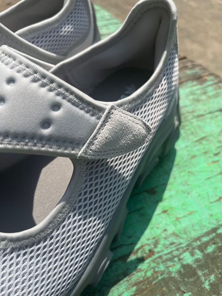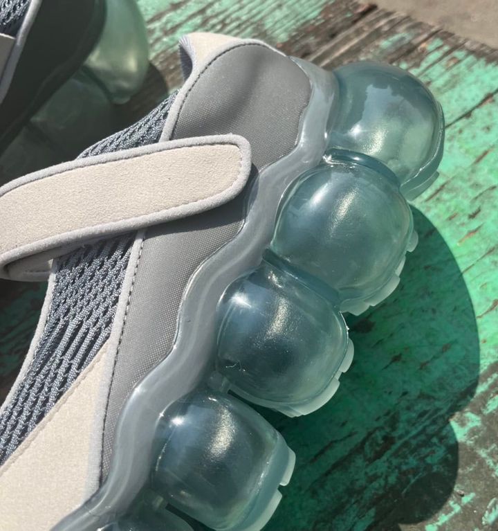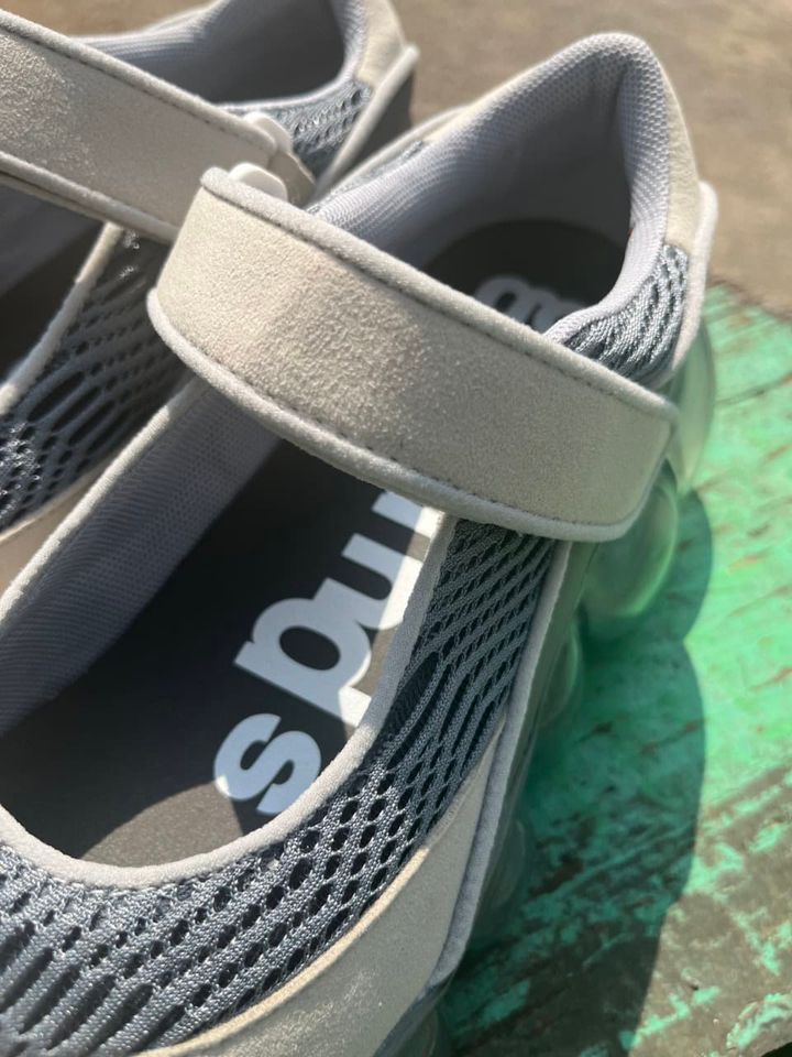 ソールの球体は動きに合わせて柔らかく動くように設計されており、フワフワと浮いているかのような独特な歩き心地を味わえるそう。甲部分を大きくオープンにしていて、ボリュームある見た目とは裏腹にすっきり見えが叶うというのも特筆すべきところ。