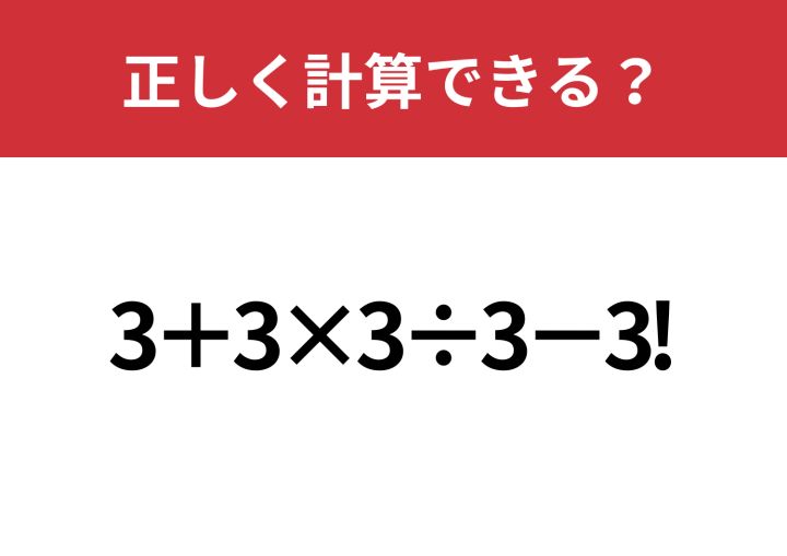 3. 簡単そうに見えるけどかなりの難問かも!?「3+3×3÷3−3!」正しく計算できる?