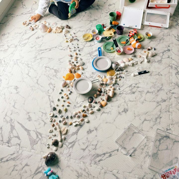 よい@満3歳クラスさんが朝の掃除や準備をしている最中、ふと気づくと子どもが静かに何かに夢中になっていました。そっと様子を見に行くと、自宅にあった貝殻が丁寧に並べられていて、まるで小さな風景が広がっているような状態に。わが子のひとりごとをに耳を澄ませると、それは「川」なのだとわかりました。あまりにも美しくて片付けるのが惜しくなり、その瞬間を写真に収めたといいます。