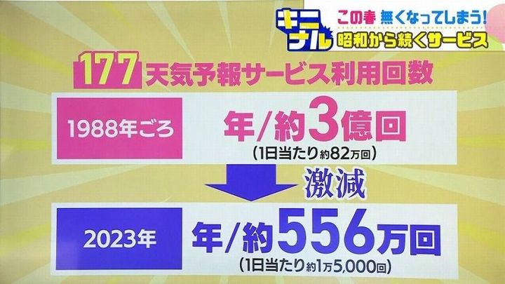 しかしインターネットの普及などで手軽に天気情報を得られるようになったことで利用者は減少…。