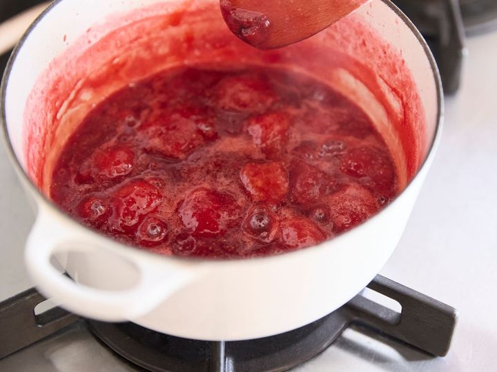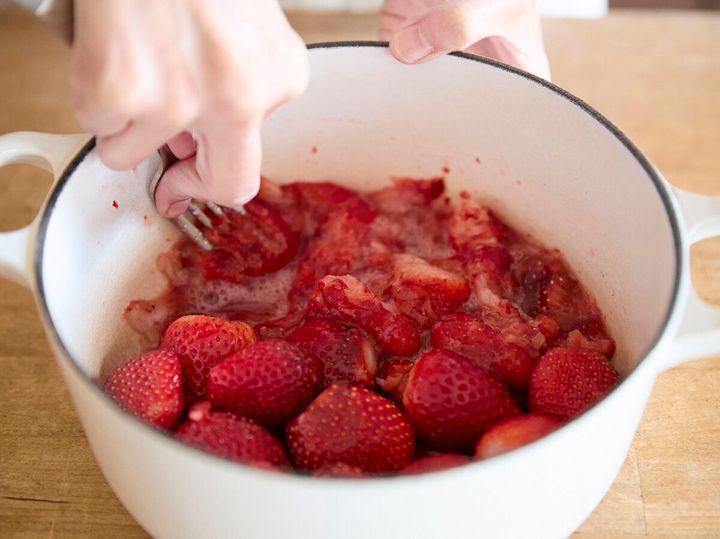 半分は形を残したまま煮つめることで、いちごのごろっとした存在感と、とろりとした口当たりが同時に楽しめます♪