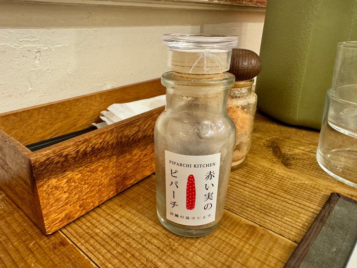 インテリアのステキな店内では、ステキな器でこだわりのランチとディナーが頂けます。お店の名前になっている「ピパーチ」とは、八重山地方の"島コショウ"のことで、石垣島では生活に欠かせない存在なんだとか。沖縄本島ではまだ認知度が低いそうなのですが、テーブルにも用意されていたりと、お店のシンボルとなっております。かけてみると、程よいアクセントでとても美味しかったです。