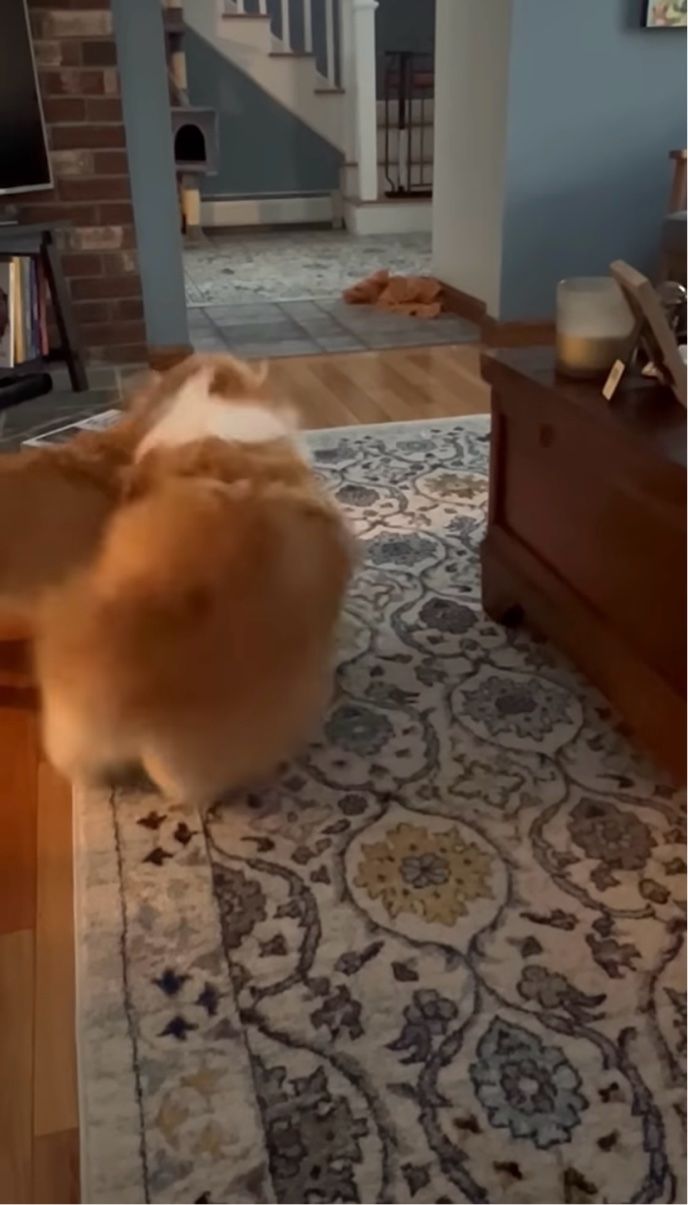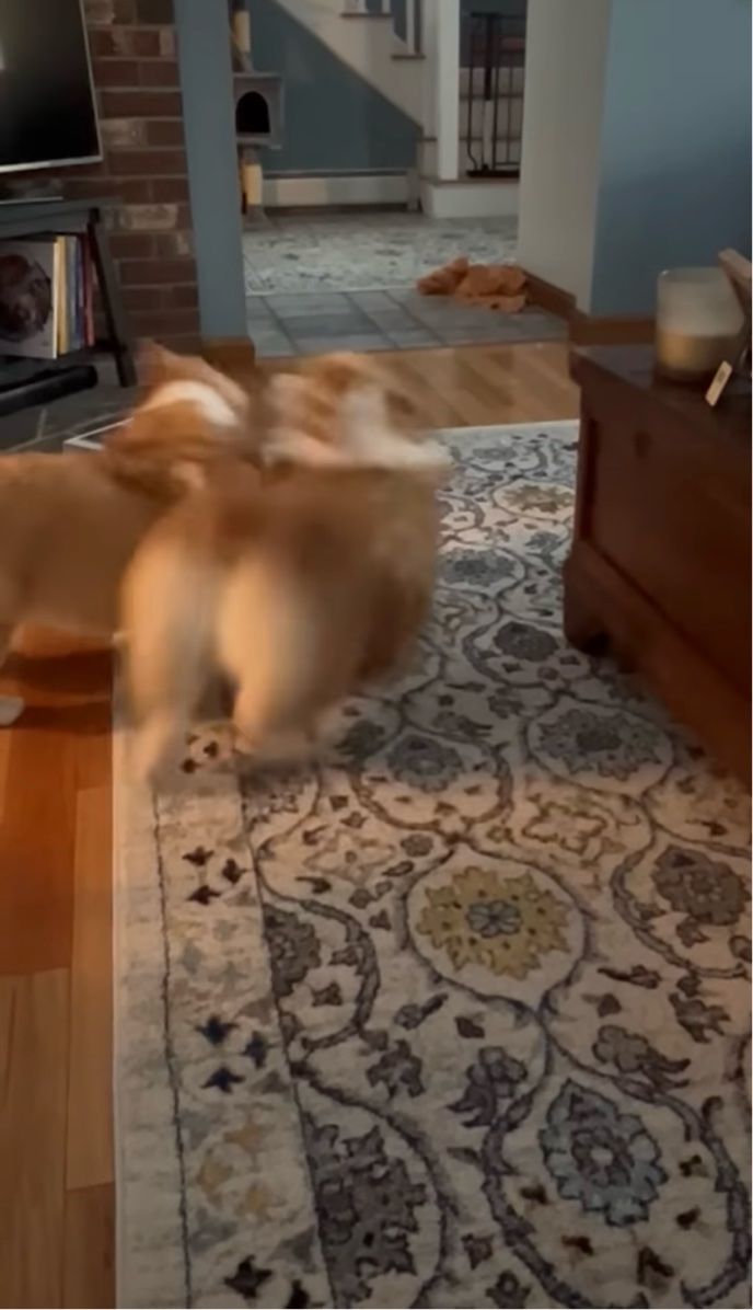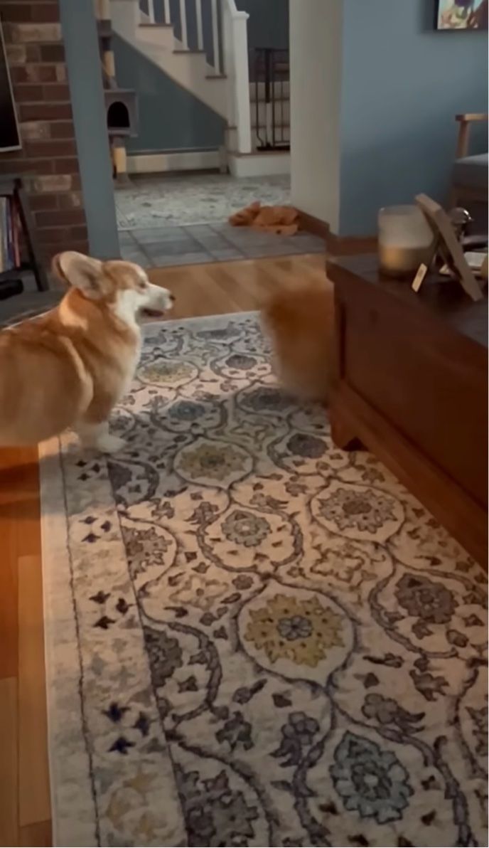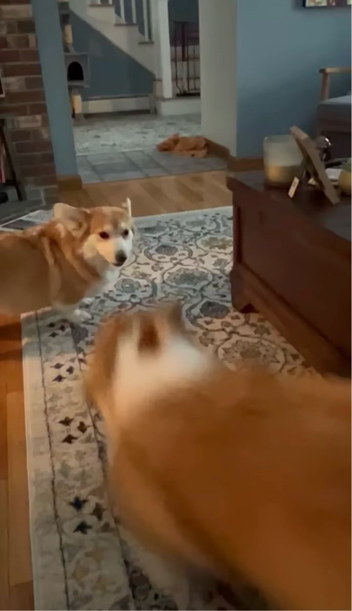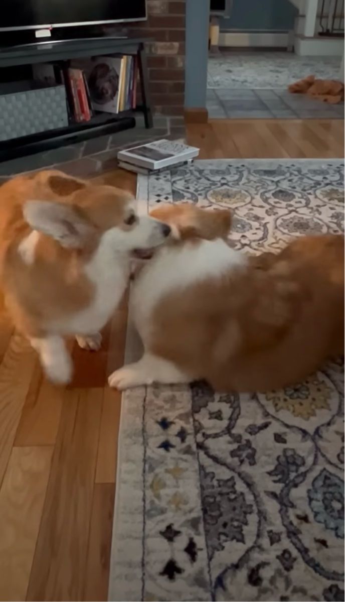 ご紹介する動画は、アメリカ・ニュー・ハンプシャー州フックセットのとあるお宅で撮影されたもの。 コーギーの親子の微笑ましいやり取りが収められていました。