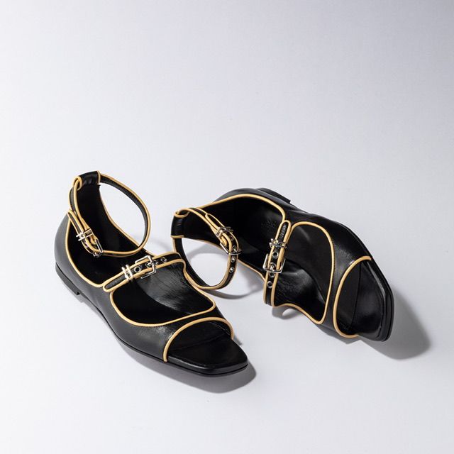 エレガントなモノトーンコーデを無難に終わらせない新作のフラットサンダル。抜け感のあるアッパーデザインに、コントラストを織り成すパイピング配色が都会的なムードを醸し出します。ストラップには象徴的なHバックルで全方位抜かりないデザインが流石です。