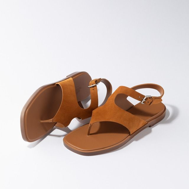 ラフなトングサンダルをモダンに見せるストラップタイプの新作サンダル。リラックスしたムードのなかに、きちんとした印象も感じさせるレザー仕立てのため、大人のカジュアルスタイルに好相性。休日スタイルをクラスアップできます。