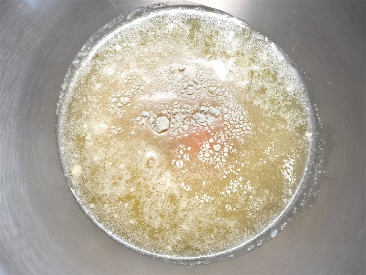 3. 別のボウルに残った卵、塩、こしょう、酒、鶏がらスープを入れて混ぜます。