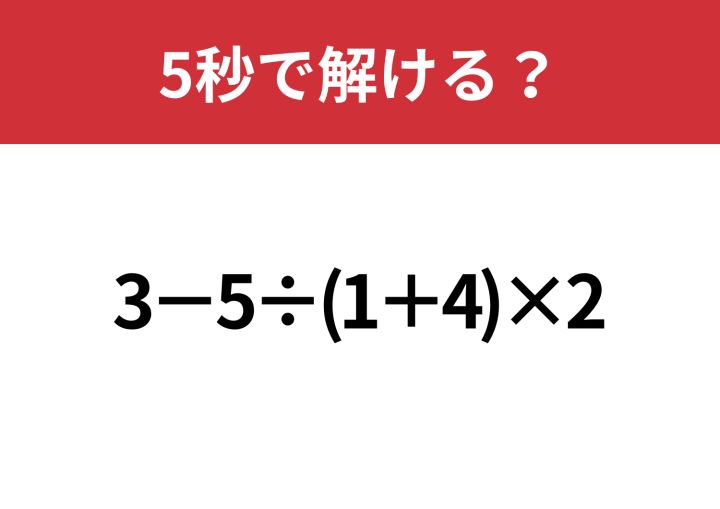 大人でも解けない人は多いかも!?「3−5÷(1+4)×2」5秒で解ける?