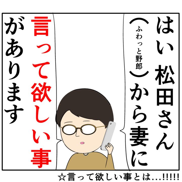 めが根さんは「はい、松田さんから妻に言って欲しい事があります」とろみ緒さんからジュリ実さんに言って欲しいことがあると言いました。