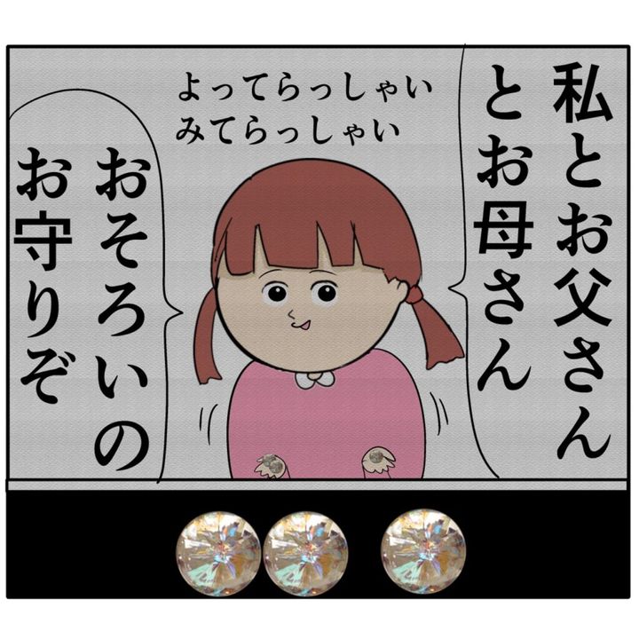「私とお父さんとお母さん、おそろいのお守りぞ」と言ってあかりちゃんが渡してくれたお守り。